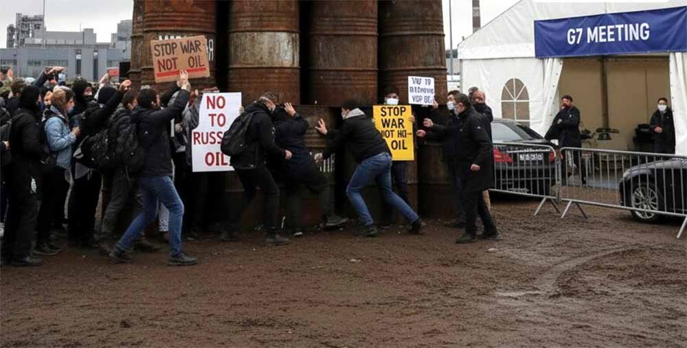बुधवार को जी7 ने कहा कि रूस पर दबाव बनाने के लिए साझा कदम उठाए जाएंगे। समूह के वित्त मंत्री ने कहा कि यूक्रेन पर आक्रमण के कारण रूस के राजस्व को कम करने की कोशिशें जारी हैं। सदस्य देशों की बैठक के दौरान टैरिफ और इम्पोर्ट और एक्सपोर्ट बैन जैसे व्यापार संबंधी उपायों पर भी चर्चा की गई थी। साझा बयान के अनुसार, 'हम उनको निशाना बनाएंगे, जो यूक्रेन पर आक्रमण के बाद से रूसी तेल खरीद को बढ़ाना जारी रखे हुए हैं।'