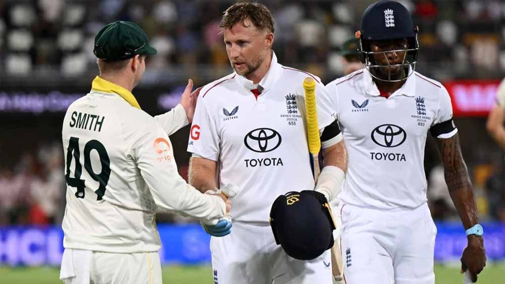 इंग्लैंड की टीम ऑस्ट्रेलिया के खिलाफ दूसरे एशेज टेस्ट क्रिकेट मैच के दूसरे दिन शुक्रवार को ब्रिसबेन में अपनी पहली पारी में 334 रन बनाकर आउट हो गई। जो रूट 138 रन बनाकर नाबाद रहे। टेस्ट क्रिकेट में नंबर एक बल्लेबाज रूट ने मैच के पहले दिन अपना शतक पूरा किया था। यह ऑस्ट्रेलिया की धरती पर 30 पारियों में उनका पहला टेस्ट शतक था। उन्होंने 11वें नंबर के बल्लेबाज जोफ्रा आर्चर के साथ अंतिम विकेट के लिए 70 रन की महत्वपूर्ण साझेदारी की।