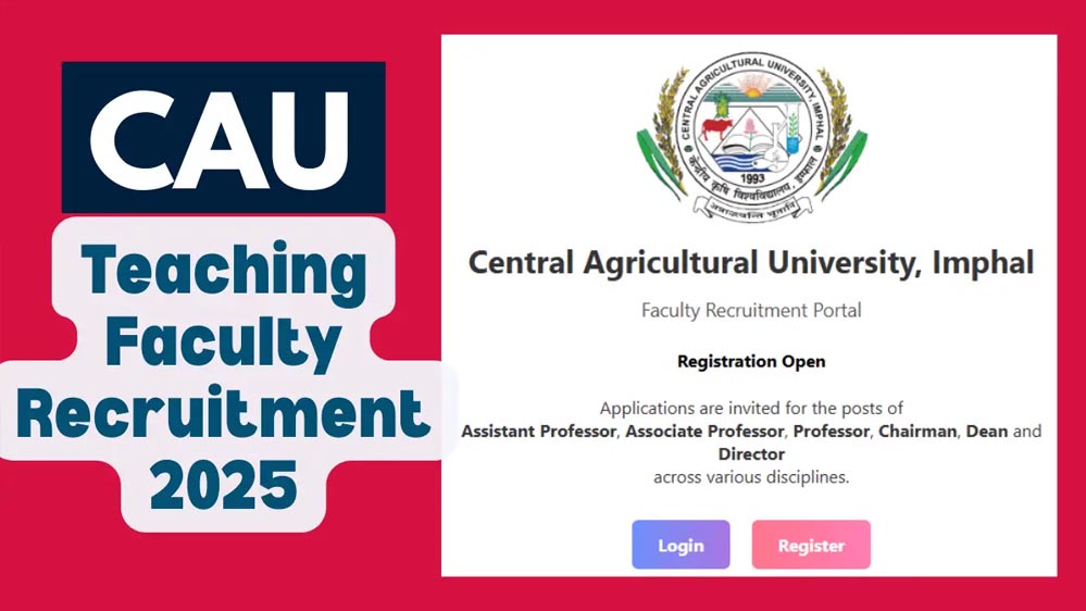 केंद्रीय कृषि विश्वविद्यालय में सरकारी नौकरी पाने का सुनहरा मौका है। सीएयू ने प्रोफेसर, असिस्टेंट प्रोफेसर, एसोसिएट प्रोफेसर और चेयरमान समेत कई पदों पर भर्ती निकाली है। योग्य और इच्छुक उम्मीवार आधिकारिक वेबसाइट cau.ac.in पर जाकर अपना आवेदन कर सकते हैं।आवेदन की आखिरी तारीख 6 दिसंबर 2025 है। आईए जानते है क्वालिफिकेशन, एज लिमिट, आवेदन प्रक्रिया और सेलेक्शन प्रोसेस के बारें में…..