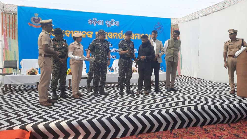 मंगलवार को जिले की सीमा से लगा ओड़िसा का मलकानगिरी जिला मुख्यालय में 22 माओवादियों ने आत्म समर्पण कर दिया। ओड़िसा के डीजीपी योगेश बहादुर खुरानिया और एडीजी नक्सल संजीप पंडा ने सभी माओवादियों को फूल देकर स्वागत किया। इन 22 माओवादियों पर 1 करोड़ 84 लाख का इनाम घोषित था। सभी को फूल दिया गया और मुख्यधारा से जुड़ने की बधाई दी गई। इस दौरान अखिलेश्वर सिंह डीआइजी एसआईडब्ल्यू समेत पुलिस अधिकारी मौजूद रहे।