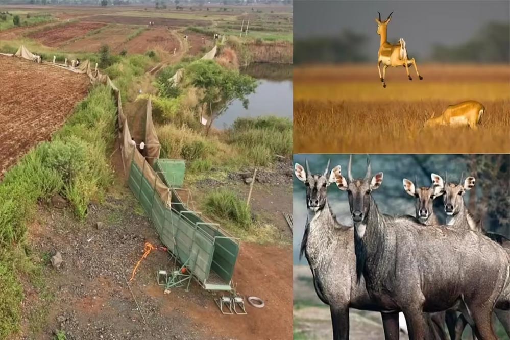हेलीकॉप्टर और बोमा तकनीक से पकड़े गए 846 कृष्णमृग और 67 नीलगाय