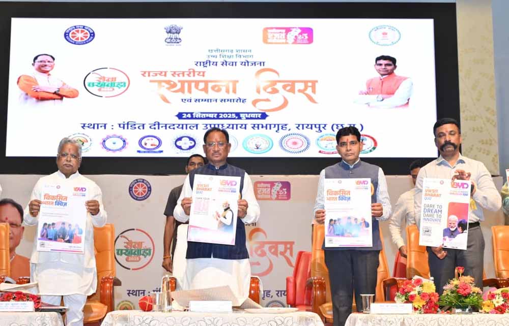 मुख्यमंत्री विष्णु देव साय ने इस अवसर पर राष्ट्रीय सेवा योजना की पत्रिका ‘समर्पण’ और विकसित भारत क्विज कार्यक्रम के पोस्टर का विमोचन किया। उन्होंने राष्ट्रीय सेवा योजना अंतर्गत उत्कृष्ट कार्य कर रही संस्थाओं, अधिकारियों और स्वयंसेवकों को सम्मानित भी किया।