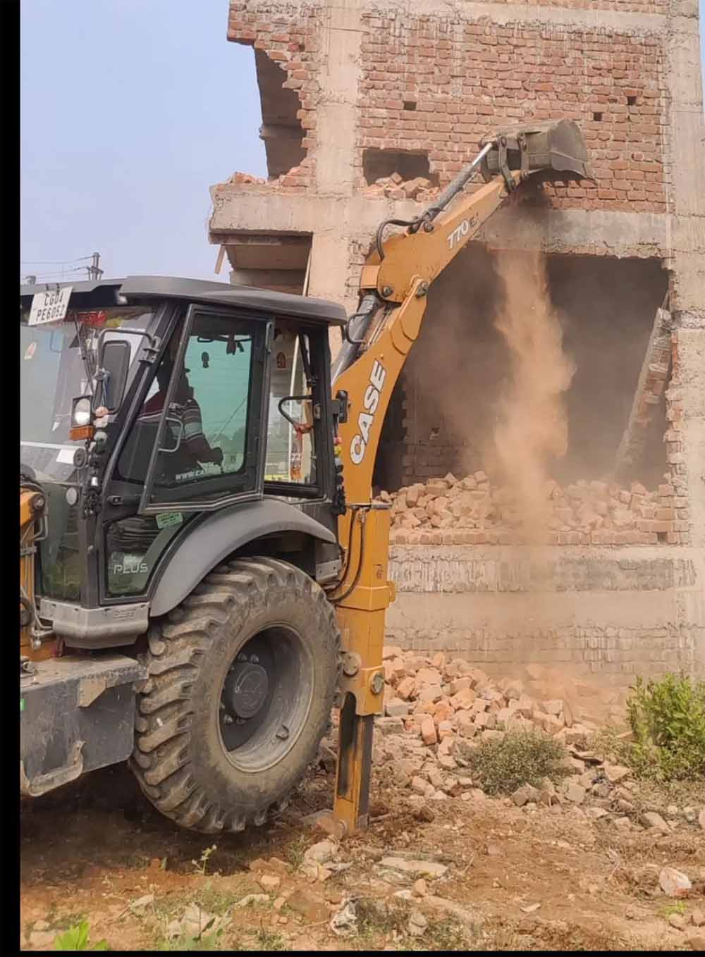 अनुमति के विपरीत किया था निर्माण, रायपुर के चंगोराभाठा में निर्माणाधीन भवन पर चला बुलडोजर