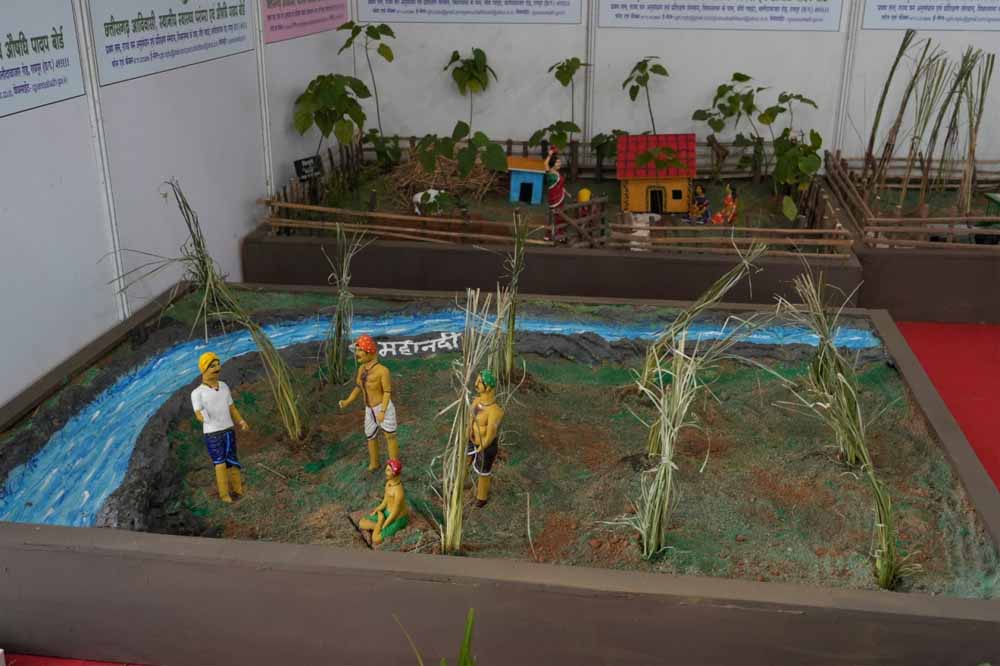 स्टॉल पर विभिन्न आकर्षक मॉडलों के माध्यम से खेती के सफल उदाहरण प्रस्तुत किए गए। इनमें नदी किनारे की रेतीली एवं अनुपयोगी भूमि पर खस की खेती, महिला सशक्तिकरण के लिए घरों की बाड़ी में सिंदूरी, सतावर एवं ब्राह्मी का रोपण तथा धान की खेती के कन्वर्जेंस के रूप में लेमनग्रास की खेती के मिनिएचर मॉडल शामिल रहे। ये मॉडल किसानों एवं आमजनों के लिए विशेष आकर्षण का केंद्र बने।