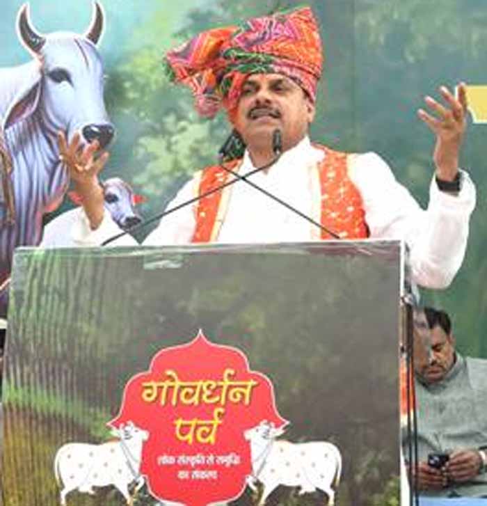 मुख्यमंत्री डॉ. मोहन यादव ने कहा है कि प्रदेश में 21 अक्टूबर को गोवर्धन पर्व लोक अनुष्ठान और सांस्कृतिक परंपराओं के अनुसार मनाया जाए। आयोजन में गौशालाओं तथा पशुपालकों को विशेष रूप से सहभागी बनाया जाए। साथ ही गोवर्धन पर्व पर पशुपालन तथा दुग्ध उत्पादन के क्षेत्र में विशेष उपलब्धियां दर्ज करने और नवाचार करने वाले उद्यमियों को सम्मानित भी किया जाए। मुख्यमंत्री डॉ.यादव गोवर्धन पर्व आयोजन के संबंध में सोमवार को मंत्रालय में आयोजित बैठक को संबोधित कर रहे थे। मुख्य सचिव श्री अनुराग जैन सहित वरिष्ठ अधिकारी उपस्थित थे।
