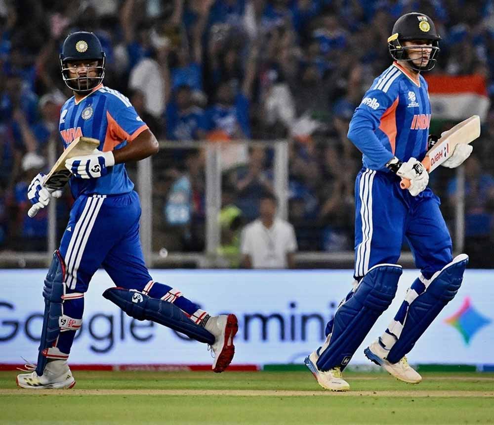 अभिषेक शर्मा ने 18 गेंदों में अर्धशतक पूरा किया, लेकिन 21 गेंदों में 52 रन बनाकर वे आउट हो गए। हालांकि, भारत को तब तक दमदार शुरुआत मिल चुकी थी। संजू सैमसन ने 33 गेंदों में अपना अर्धशतक पूरा किया, जो इस टी20 विश्व कप में उनका लगातार तीसरा अर्धशतक है। संजू फिर से 89 रनों की पारी खेलकर आउट हुए। ईशान किशन ने 23 गेंदों में अर्धशतक पूरा किया, लेकिन वे 54 रन की पारी खेलकर आउट हो गए। सूर्या का खाता नहीं खुला और हार्दिक ने सिर्फ 18 रन बनाए। शिवम दुबे ने 8 गेंदों में 26 रन बनाए।