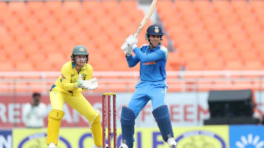 भारतीय महिला और ऑस्ट्रेलिया महिला के बीच रविवार को महिला विश्व कप का 13वां मुकाबला विशाखापत्तनम में खेला जा रहा है। भारतीय टीम ने पहले बल्लेबाजी करते हुए 48.5 ओवर में सभी विकेट खोकर 330 रन बनाए। भारत के लिए स्मृति मंधाना ने सर्वाधिक 80 रन बनाए। प्रतिका रावल ने 75 की पारी खेली। ऑस्ट्रेलिया की ओर से सदरलैंड ने 5 विकेट हॉल लिए।