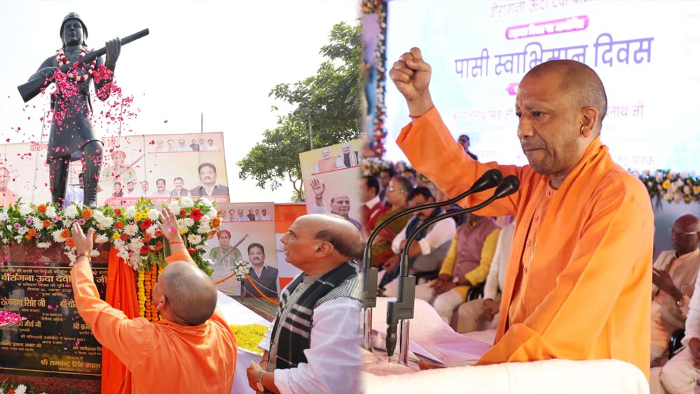 मुख्यमंत्री योगी आदित्यनाथ व रक्षा मंत्री राजनाथ सिंह ने किया वीरांगना ऊदा देवी पासी की प्रतिमा का अनावरण