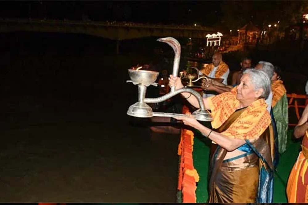 मां सरयू की भव्य आरती में शामिल हुईं केंद्रीय वित्त मंत्री निर्मला सीतारमण