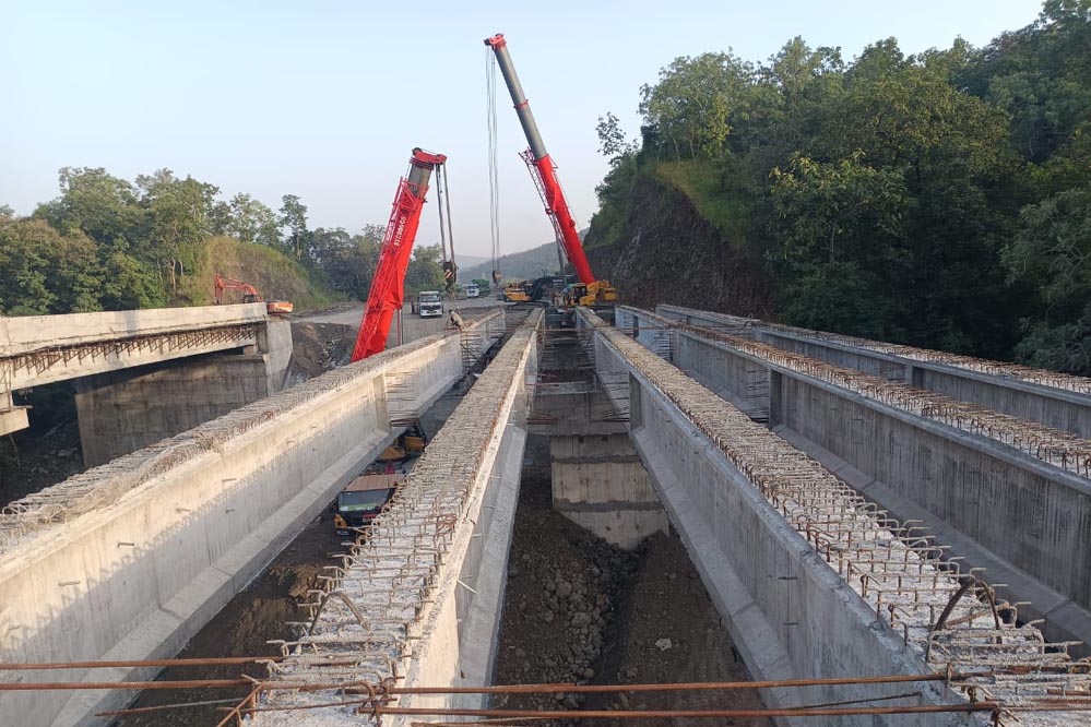 सड़क निर्माण कंपनी मेघा इंजीनियरिंग के प्रोजेक्ट हेड नागेश्वर राव के अनुसार, ''वर्तमान में सड़क निर्माण का कार्य लगातार तेजी से किया जा रहा है. भैरव घाट पर हादसों को देखते हुए सड़क डिजाइन में कई विशेष बातों का ध्यान रखा गया है. जिसमें मुख्य तौर पर यहां नर्मदा नदी पर बने पुल से ऊंचा वायाडक्ट पुल के रूप में तैयार किया गया है. साथ ही भैरव घाट और चोरल घाट में तीन अलग-अलग टनल का निर्माण किया जा रहा है.''