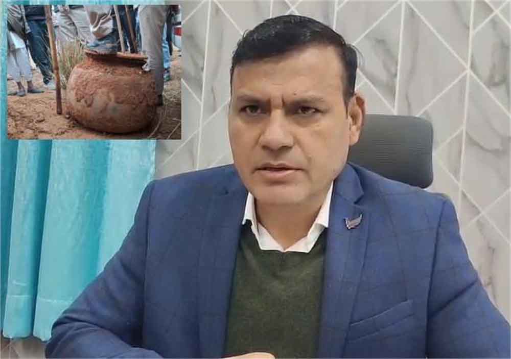दरअसल, शनिवार रात जमीन से बड़ी मात्रा में सोने से भरा भारी भरकर घड़ा निकलने की जानकारी मिली। चारागाह जमीन पर खोदी हुई जमीन पर गुलाब के फूल बिखरे होने पर ग्रामीणों ने शव होने की आंशका जताई थी जिसके बाद पुलिस को बुलाया। निवाई पुलिस ने मौके पर पहुंचकर जेसीबी से खुदाई की। खुदाई के दौरान भारी भरकर एक बड़े आकार का घड़ा निकला। लोग इसे चांदी का घड़ा बता रहे हैं। जिसे देखकर ग्रामीणों में लूट सी मच गई।