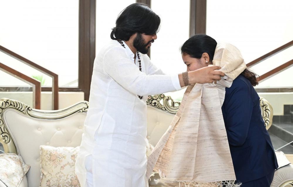 रायपुर : भारतीय महिला क्रिकेट टीम की फिजियोथैरेपिस्ट आकांक्षा सत्यवंशी ने की मंत्री एवं सतनामी समाज के गुरु खुशवंत साहेब से सौजन्य भेंट